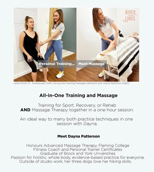 Training for sport, recovery, or rehab AND massage therapy together in a one-hour session.